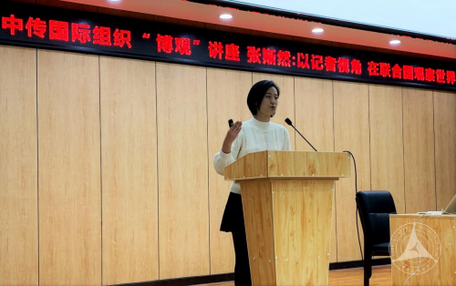 (通讯员 吴念 摄影 黄丹莹)12月6日,我校国际组织“博观”系列讲座第一场在44号楼一层报告厅顺利举行。本次活动邀请到联合国难民署驻华代表处高级新闻宣传助理、我校2014届英语专业(节目主持方向)毕业生张斯然回校作题为“以记者视角在联合国观察世界”的主题分享。近100名我校学生参加了本次讲座。