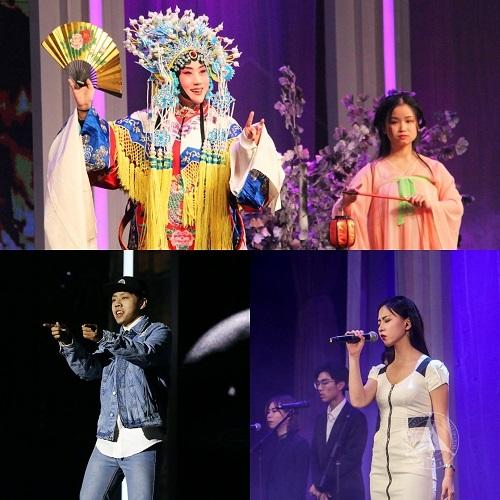 首轮比赛,十位选手依次上台表演。率先登场的是来自中国戏曲学院的毛增立,他与所在乐队一起自弹自唱《Falling Stars》,悠扬的琴声与细腻的歌声完美融合,带观众进入了“旧日游记”的时空隧道;紧接着,来自北京工业大学的高思寒带来了动感十足的舞蹈《For Hope》,瞬间点燃现场氛围;在观众热情的欢呼中,我校2016级音响导演专业的卢泠登场,以一曲《Scars to Your Beautiful》感染现场,观众无不沉醉于她沉稳醇厚的声线中;而我校2015级播音与主持艺术专业的叶子豪则用高超的说唱技巧演绎《Prejudice》,一改现场安静氛围,再次掀起了一波高潮;来自北京师范大学的韩国留学生崔晋荣用韩语深情款款地演唱了那首耳熟能详的歌曲《那个男人》,打动了每一位观众的心。第一轮竞演在嘉宾榫卯音乐热烈的说唱表演中画上句号。