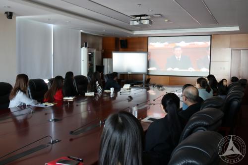 (新闻中心记者 宋佳音 摄影 孙志男)12月18日上午10时,庆祝改革开放40周年大会在北京人民大会堂隆重举行,中共中央总书记、国家主席、中央军委主席习近平出席大会并发表重要讲话。学校机关党委纪委监察处支部、党委组织部支部、党委宣传部支部在明德楼918会议室集中收看了大会实况,认真听取并学习会议精神。
