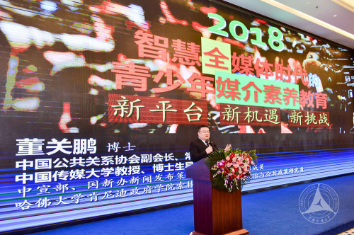 中国传媒大学媒介与公共事务研究院作为支持单位应邀参加了论坛。中共中央政治局原常委、国务院原副总理李岚清为此次论坛篆印“家校协同 立德树人”表示祝贺,第十届全国人大常委会副委员长、中国关工委主任、基金会创会会长顾秀莲出席论坛并做总结讲话,教育部党组书记、部长陈宝生书面批示对论坛的举办给予充分肯定。教育部党组成员、副部长朱之文,国家教委原副主任、国家总督学柳斌出席论坛并分别致辞。来自教育部、各省教育部门、关工委系统的代表、北京市各区县教委近300余人出席了本届家庭教育发展论坛。我校董关鹏教授受聘为首届家庭教育专家指导委员会专家,并发表了主题为“智慧融媒体时代的青少年教育:挑战、机遇与对策”的主旨演讲。