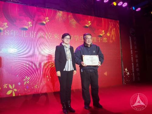 (通讯员 张哲)12月21日,北京高教学会外国留学生工作研究会年度工作总结会暨“来华留学生优秀管理干部”颁奖大会在京隆重举行。我校原学生国际交流部副部长、现国际传媒教育学院党委副书记彭军获2018年“北京高校来华留学生管理干部终身成就奖”,也是本年度唯一获此奖项的留管干部。