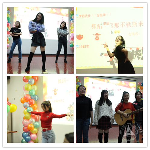 在主持人宣布晚会开始后,开场舞《I Love You》拉开了本场晚会的帷幕,三位女生优美的舞姿获得了在场老师和同学的热烈掌声。歌曲《雪落下的声音》的动情演唱舒缓了大家的心情,拉丁舞《那不勒斯来的女人》和独舞《Toca Toca》凭着表演者曼妙的舞姿赢得了一致好评,而由四位女生演唱的吉他伴奏歌曲《思念是一种病》更是由于默契的配合和动听的歌声使整场晚会达到高潮,最后主持人陶凯伦同学感情充沛地朗诵了《嘎达梅林》,为整场晚会的表演部分划上了圆满的句号。晚会还设置了互动形式新颖的弹幕抽奖环节和游戏环节,老师和同学们积极参与,乐在其中,109会议室笑声不断,惊喜连连。