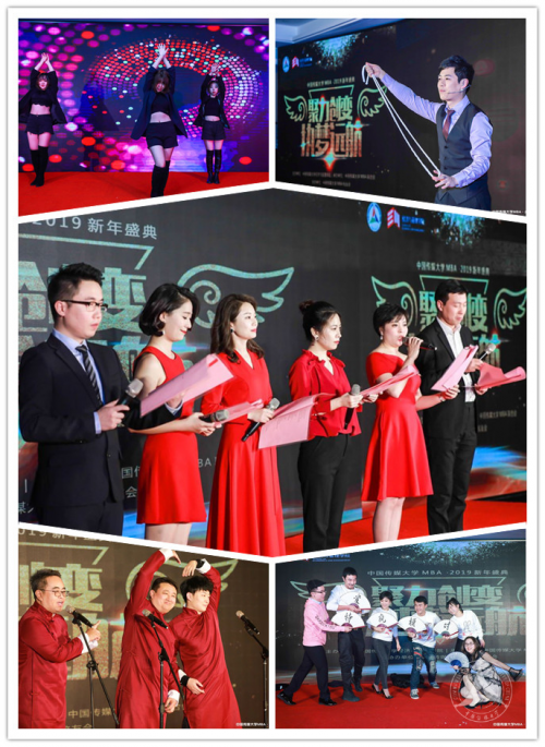 (通讯员 张利春 邹文秀 黄琪雯)1月5日晚,以“聚力创变· 执梦远航”为主题的中国传媒大学MBA2019新年盛典在中传国际交流中心三层M1隆重举办。本届晚会由中国传媒大学经济与管理学院主办、中国传媒大学MBA联合会承办、中国传媒大学MBA校友会协办。经济与管理学院党委书记金雪涛,副书记毛建国,副院长李珍晖、郑苏晖,专业学位中心主任严威,班主任、MBA相关负责老师、授课教师代表沈浩、高有信,晚会赞助商及来自20余所MBA兄弟院校代表,相关媒体单位,历届优秀毕业生和2017级、2018级全体MBA学生齐聚一堂,共同回顾“充实美满、收获累累”的2018,展望“一起拼搏、一起奋斗”的2019。