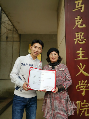 汪宗楠和指导老师赵波在马克思主义学院门口合影