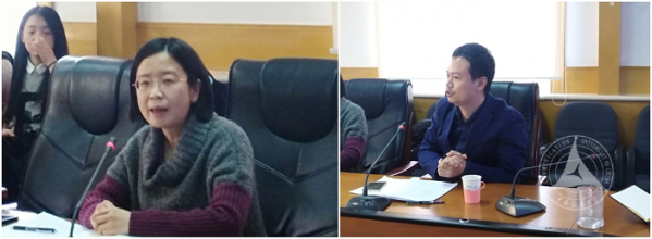 教务处副处长贺小飞、研究生院培养办主任胡洪斌分别就本科生思政课和研究生思政课教学工作与老师们进行了交流,并提出宝贵意见。