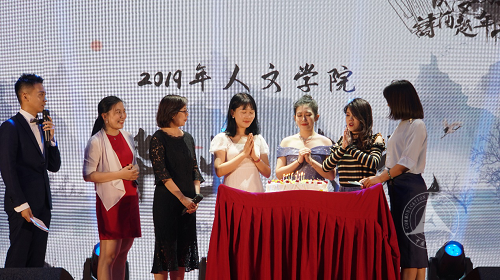 节目表演结束后,胡凤国老师、周靖波老师、何清老师进行毕业班最后一次点名。本次晚会还别有用心的准备了“庆生”的惊喜环节,张婧老师、何清老师、刘首兵老师一同切蛋糕,为6月份过生日的毕业生庆生,同时也祝愿毕业生们毕业快乐.