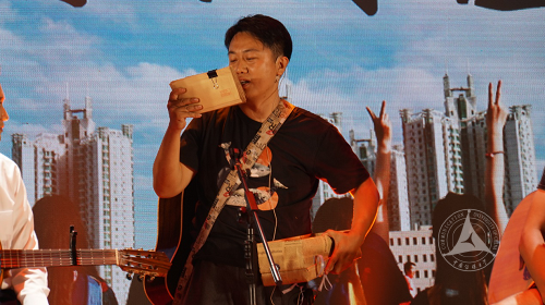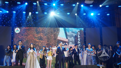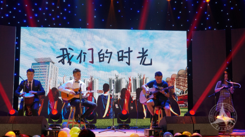在第三个板块“绚美”中,赵书至为我们演奏了古琴;陈友军、乐琦、哈澍、高远、胡洪春、赵莹六位老师为大家合唱了歌曲《橄榄树》、《外婆的澎湖湾》;由赵斌、朱泓宇、周婧雅、希尔、安凯尔组成的东拼西凑乐队为大家演唱了《我们的时光》,另外,赵斌老师还带来了毕业生们四年前写给自己的信,这位时光旅者又让毕业生们回忆起曾经青涩懵懂的模样;留学生思江、李睿、盛文为大家带来了歌曲《飞得更高》、《真心英雄》。