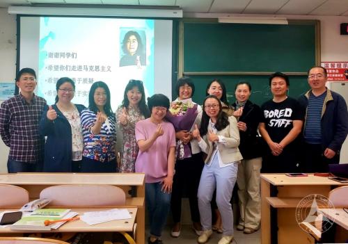 从美国西北大学做访问学者到留中传任教,从做教工支部书记到马原教研室主任至今,做事认真和一丝不苟仿佛成为了她的行为标签。工作中的她对每件小事都要求尽力做到极致,由于喜欢所以热爱,不要名头不忘初心,这或许就是她心中教育工作本来的样子,她并没有说出来,却是这样做的。她做支部书记时组织过一个“教师影像展”的活动,令不少同事记忆犹新。那次活动的目的是增进老师们彼此的了解和熟悉,活动要求大家提供自己不同年龄段的照片。杨老师蛮有创意地将大家的幼年照片集中起来,设计了一个“猜猜我是谁”的小游戏,大家猜得不亦乐乎,对于展挂在教研室四周墙壁上的照片,许多老师都是看了又看,笑了又笑。这个学期教研室的张付老师退休前执教的最后一堂课上,教研室主任杨雁鸿老师组织教研室和学院办公室全体老师悉数到教室里为张老师献花献言,现场的学生们纷纷被这份美好的情谊所感动。这些就是杨老师喜欢做的事,用真心,动真情。