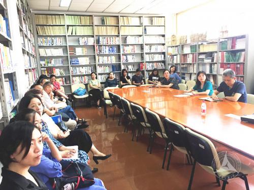 最后,召开了2019年上半年国际交流与合作工作总结会。传播研究院国际交流与合作办公室负责人黄典林副教授向与会教师介绍了《传播研究院国际交流与合作管理细则》,对教职工因公出国出境访问、学生出国出境交流、国际学者来访、国际交换生管理以及申办国际会议的详细办事流程、管理规定和具体要求进行了详细说明。黄典林副教授、何兰教授、薛宝琴老师、贾乐蓉副教授分别就参加国际交流与合作活动的成果进行了汇报分享。
