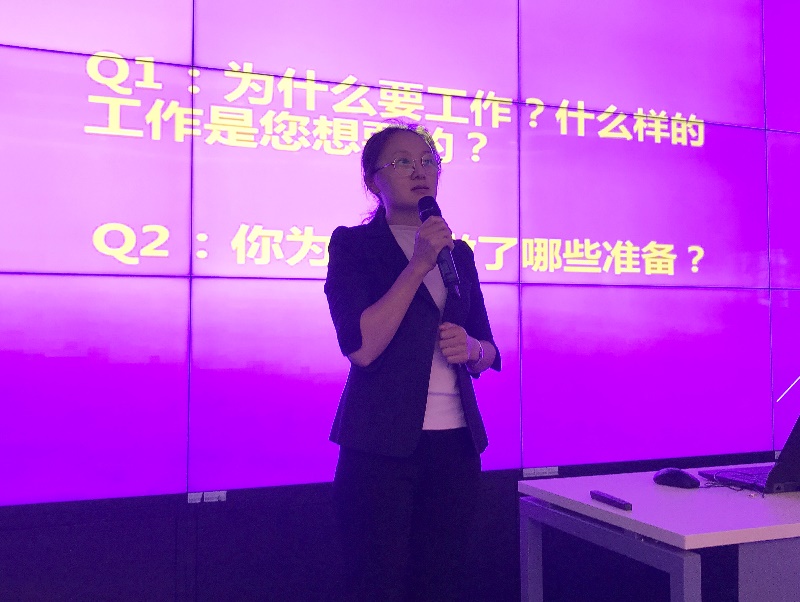 随后,2011级MBA校友张弛,她以一位资深人力资源总监的身份,从简历要详实、面试要诚实、计划要落实、工作要踏实四个方面给新生们介绍了研究生的职业规划,这无疑给“年轻的小白杨”们上了重要一课。张弛校友重点强调了职场必备的要素有建立目标、认识自己、不忘初心、目标分解、践行自己、长存恩心、达成目标、重塑自己、尽职尽责等,“小白杨”们全神贯注聆听,不时点头呼应。