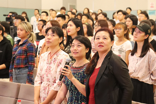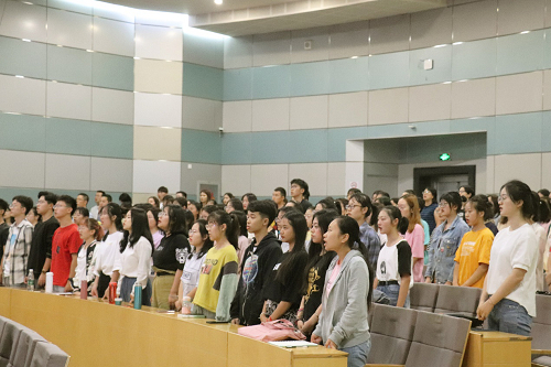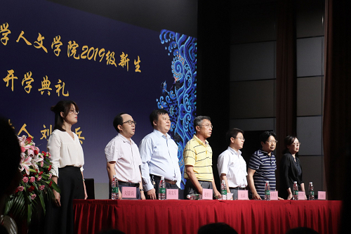 资深教授张晶院长、谢筠教授,以及杨燕琼同学、爱美丽同学(墨西哥)、张华维同学的精彩发言赢得了现场的阵阵掌声和欢呼声,他们的真诚和热情感染了在座的每一位师生,相信新生也由此对未来的学习生活充满了期待和信心。典礼最后,全场人员齐唱《我和我的祖国》,共同为即将迎来70诞辰的祖国献上祝福。在歌声、掌声与欢笑声中,刘首兵副书记对本次开学典礼进行总结发言,她首先代表全院教师对2019级新生表示诚挚的欢迎和衷心祝福,感谢同学们选择中国传媒大学人文学院,这是明智而正确的选择!她希望同学们新学期开启新的征程,以全新的面貌在人文学院修身养德、潜心求学、舒心生活,并真诚祝愿全院师生身体健康、生活美满、工作与学业顺遂。刘副书记最后号召全院师生齐心协力,彼此照亮,学思相继,守正出新,共同谱写人文学院新的篇章。在场师生表示会积极响应刘副书记的号召,团结奋进,不断钻研,共同努力,弘扬人文精神,展现人文魅力,为人文学院增光添彩!