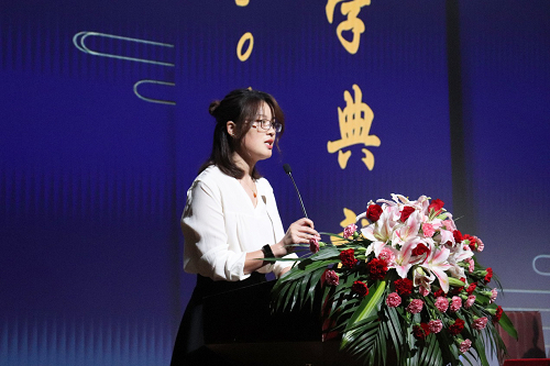 教师代表谢筠教授致辞。谢教授肯定了人文学科的重要性,鼓励大学生多读经典、读懂经典,建议同学们“读万卷书,行万里路”。关于大学生的学习和成长的话题,她希望今后师生双方能够在教学相长的过程中不断提升、不断成长。最后,她给了在座的新生几点提示:要去思考做人的格局与视野、读书的体验与感悟、生命的智慧与成长,并祝愿大家在学习的过程能收获生命历程中最为深刻的成长的快乐。