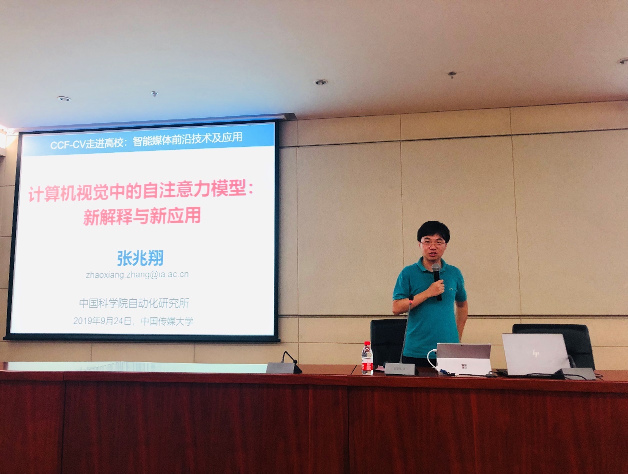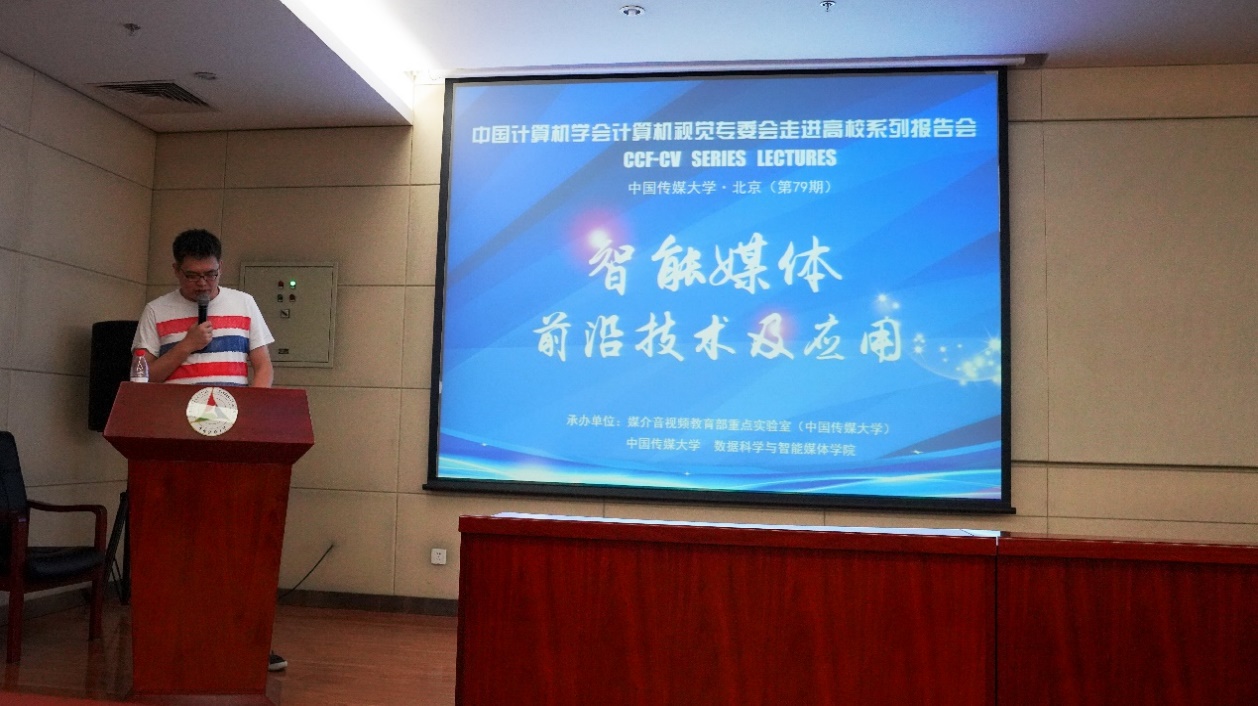 9月24日下午,由中国计算机学会计算机视觉专委会(CCF-CV)主办,中国传媒大学媒介音视频教育部重点实验室、数据科学与智能媒体学院联合承办的第79期CCF-CV走进高校系列报告会——“智能媒体前沿技术及应用”在中国传媒大学明德楼一层明德报告厅成功举行。