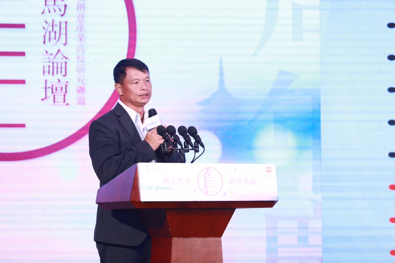 中国传媒大学副校长刘延平在致辞环节中提出了三点倡议,一要坚持合作,继续健全两岸高校等文化团体有关文化创意产业的交流机制;二要鼓励创新,建立两岸学子“文化创客”的扶持机制,助力两岸学子的文化创业;三要跨界融合,积极促进两岸文化创意学界、产业界的互动合作。