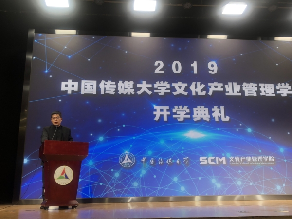 (通讯员 叶怀阳)9月25日下午,中国传媒大学文化产业管理学院2019级新生开学典礼在中传讲堂隆重举行。文化产业管理学院院长范周,党总支书记卜希霆,校团委副书记陈莹峰,院学术委员会主任贾旭东以及业界合作单位代表出席开学典礼。典礼由文化产业管理学院党总支书记卜希霆主持。