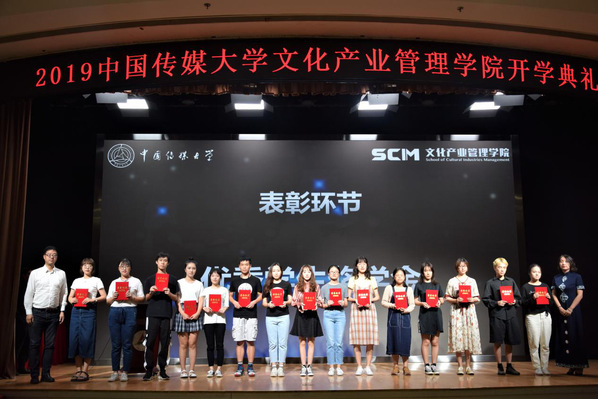 开学典礼上还为2018-2019学年文化产业管理学院优秀学生、教师表彰并颁发奖教学金。本次奖教学金由E9梦想基金、人民日报文化传媒奖教奖学金、四达时代奖教奖学金、华谊兄弟星剧场奖教奖学金赞助支持。