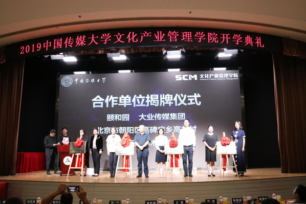 此外,典礼现场举行了中国传媒大学文化产业管理学院与教学科研实习基地——颐和园、大业传媒集团、北京市朝阳区高碑店乡高井村、北京陶瓷艺术馆等合作单位的揭牌仪式。