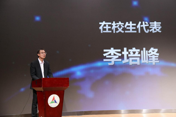 接下来是由在校生代表,2017级博士生李培峰同学发言,李培峰同学对几年来的学习生活进行了总结,并且结合自己的亲身经历与感受,与在座同学们交流了自己的想法,向同学们传授了学习文化产业相关知识的方法和实践经验。李培峰同学还说,对于现在忙碌而充实的学习生活,他从来都没有后悔过自己的选择。同学们在对他的潜心钻研心生敬佩的同时,也对文化产业管理专业的未来有了更坚定的信心。