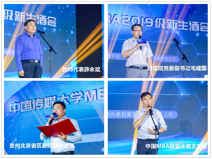 最后致辞的是中国MBA联盟主席王建超。他称赞了中传MBA的办学模式和影响力,并送上了真挚的祝福,希望中传MBA越办越好,希望新生扬帆起航乘风破浪。三位领导的致辞拉开了中传MBA2019级新生迎新晚会的序幕。