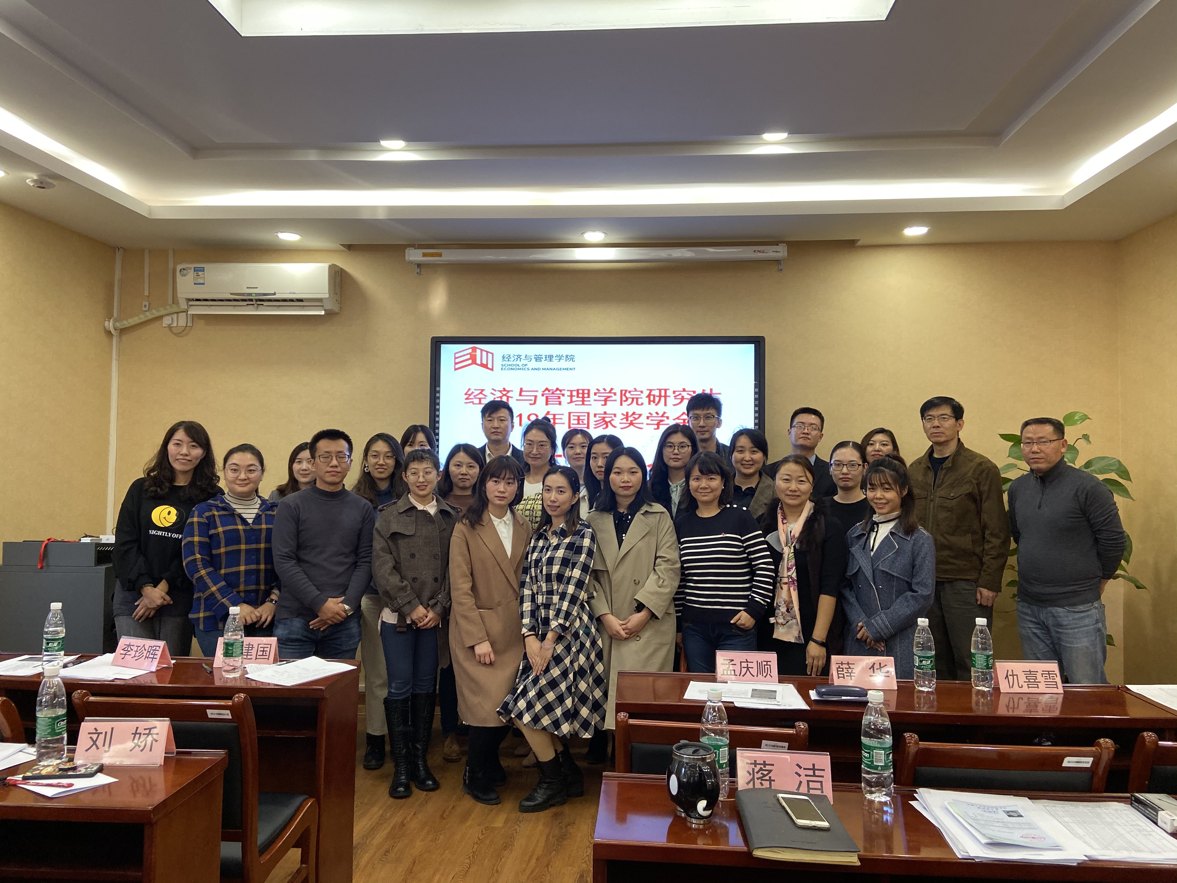 答辩结束后,根据“学习成绩优异,科研能力显著,社会实践、创新能力、综合素质等方面表现突出,发展潜力突出”等要求,经过评委老师打分和合议,最后由毛建国副书记宣读了国家奖学金获得者名单:2018级传媒经济学博士研究生董紫薇、2018级产业经济学硕士研究生李可为、2018级管理科学与工程硕士研究生王新阳、2018级工商管理硕士研究生邹文秀、王培霖、韦苇。