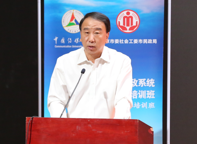 陈文申书记在开班致辞中热烈欢迎学员们来我校参加培训学习,介绍了我校的办学特色、培训教育开展情况。回顾了近两年来学校与民政部和北京市民政局的深度合作情况,并表示北京市委社会工委、市民政局将高规格的培训班放在传媒大学举办,既是对我校的信任和肯定,也是鼓励和鞭策,希望学员们在培训学习结束后多提宝贵意见,帮助我们把培训教育做的更好。