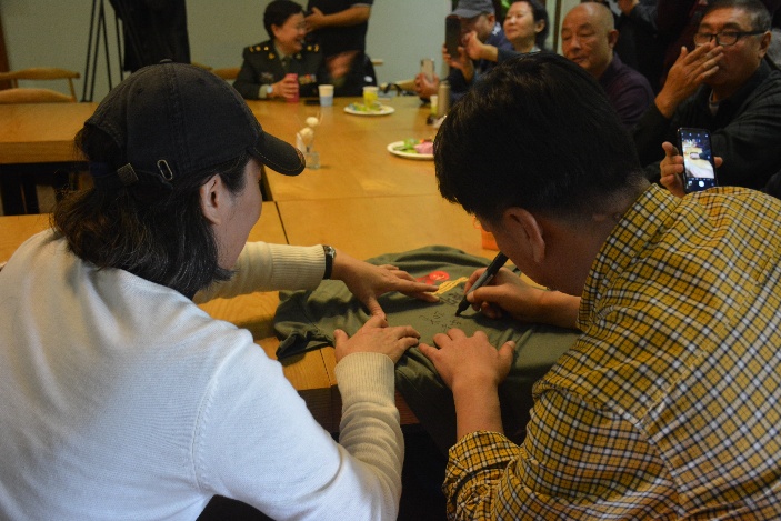 最后,校友们还向母校捐赠了在座谈会现场集体签名的纪念T恤,以此感谢母校和恩师的培育,并称在职业道路上和行业领域内取得的成就是“站在巨人的肩膀上起步”。我校校友工作办公室主任李伟老师作为代表接收了了校友的捐赠,向校友介绍校庆日的相关活动并发出诚挚的邀请。