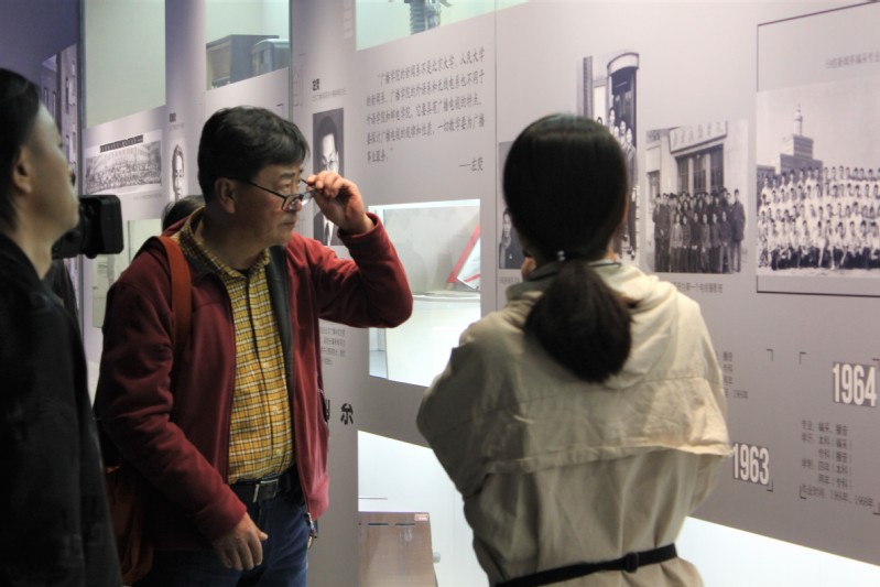 走出学院前,他们在一楼的大屏幕前合影留念的同时还原起旧时演小品的情形,校友们甚至还清晰地记得其中人物的台词和动作神态,全因这里留下了他们关于青春独一无二的回忆。走过校训石、至善亭,校友们来到校史馆参观,并在老西门、中传小剧场的复刻景观前留下了珍贵的影像。