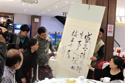 校友代表也表达了对我校校友工作办公室此次返校活动的组织筹备和接待工作的感谢,并在晚宴现场由朱宏校友代表87干修班全班同学向母校赠送了由87干修班刘郎校友撰联、马克申校友书写的“感念师恩终生事,心萦母校三十年”的书法卷轴,表达了全体同学牢记师恩不忘母校的深切情怀。