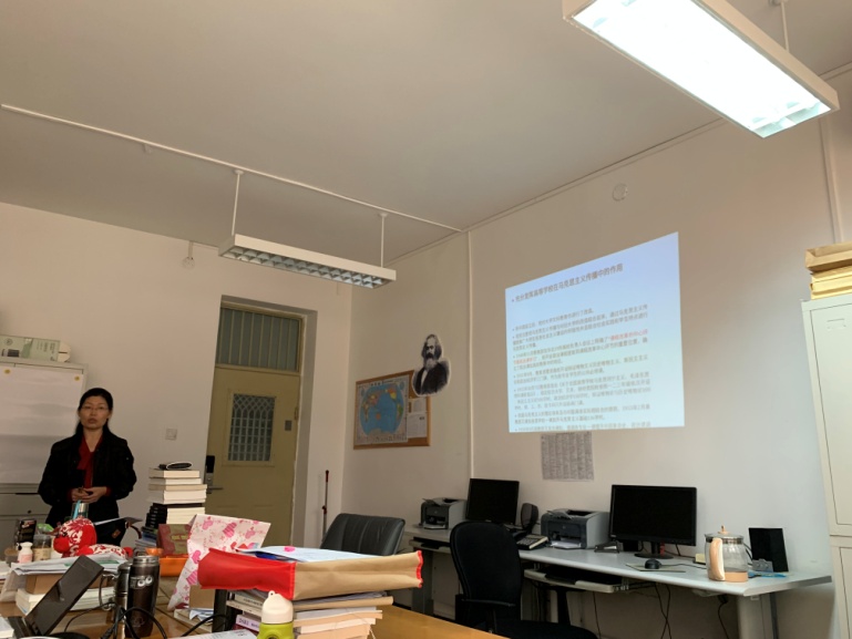 教工第一党支部书记张静敏以“新中国成立初期马克思主义的传播”为主题为党员作了一场内容丰富的专题讲座。张静敏老师首先阐明本次党课的选题是基于新中国成立70年的成就、经验和教训、“三为、六要、八统一”和相似的复杂的社会背景考虑的。其次,她结合自己的研究,详细讲述了新中国成立初期马克思主义传播的实践和特点,包括专业性、系统性、管控严格的传播主体、多样化的传播路径、广泛的传播对象、“破立”结合的传播内容和通俗化的语言形式五个方面。最后,她认为要以史为鉴,在经济全球化不断深入、社会主义市场经济体制改革不断深化、我国目前意识形态工作极端重要的情况下,深入研究建国初期马克思主义占领意识形态领域指导地位的必要与可能、具体的实践举措以及在实施过程中的经验与失误,对于我们今天面对更加复杂的国际国内局势,切实做到尊重差异、包容多样,用社会主义核心价值体系引领多样化的社会思潮,指导当前意识形态工作更加有效地进行具有现实的指导意义。张静敏老师还进一步提出在意识形态工作中,要坚定不移地巩固马克思主义在意识形态领域的指导地位,尊重意识形态建设的客观规律,夯实意识形态赖以存在的物质基础,丰富马克思主义意识形态的传播途径。