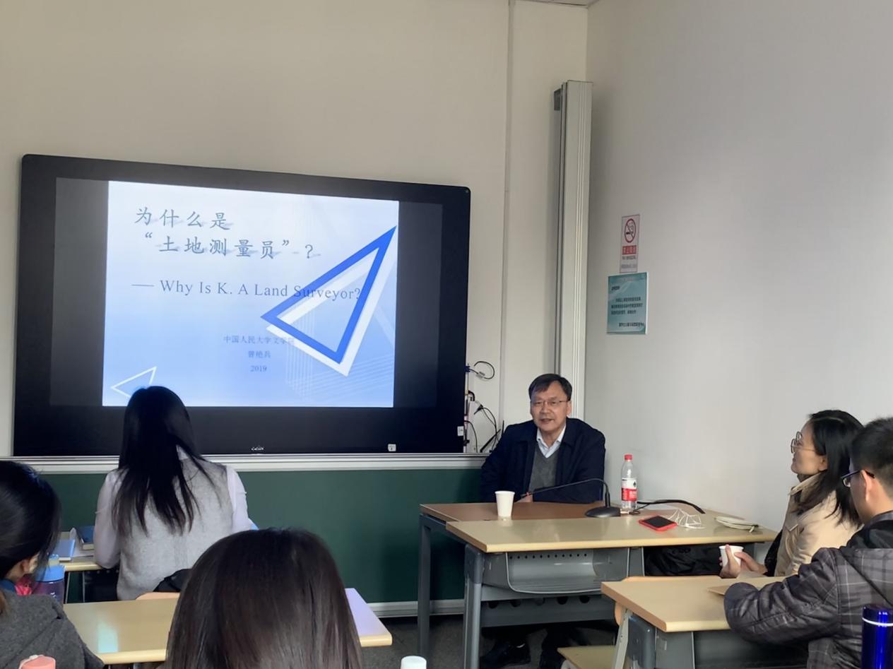 (通讯员 乐琦)为了营造学术氛围,进一步扩展师生的研究视野,在我校人文学院的支持下,2019年10月30日下午3点,中国人民大学曾艳兵教授做了“‘K’为什么是土地测量员?”的学术讲座。讲座在中国传媒大学立德楼105-1室举办,由人文学院比较文学与世界文学学科负责人耿波教授主持,人文学院部分教师及汉语言文学专业本科生、比较文学与世界文学专业全体研究生参与了此次学术活动。