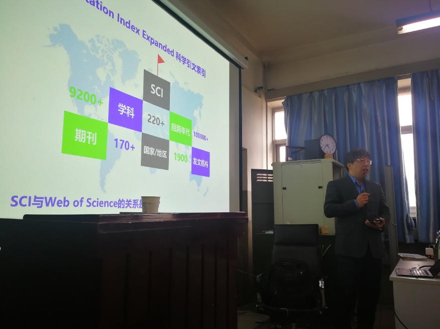 本次专题讲座由科睿唯安(Web of Science数据提供商)的中国区学术研究事业部高级大区经理、资深专家赵冲先生担任主讲人。赵冲先生首先就Web of Science和SCI进行了介绍。随后,结合实际案例重点介绍了利用“SCIE、SSCI、A&HCI”等引文索引平台进行科学选题、创新研究、追踪科学前沿与最新进展的方法与技巧,并就如何利用Endnote提高论文写作效率、选刊投稿进行了介绍。最后,针对师生提问进行了有效交流互动。报告现场座无虚席,气氛热烈,学校在科学研究处的政策引导和鼓励下,全校师生的科研热情空前的高涨。通过本次讲座我校师生在 “Web of Science”数据平台上,了解到更多的应用技巧,进一步提升我校教师与研究生把握科学研究的发展趋势和学术热点的能力,切实提高科研选题和论文投稿的质量,对我校科研发展提供了有益的帮助。