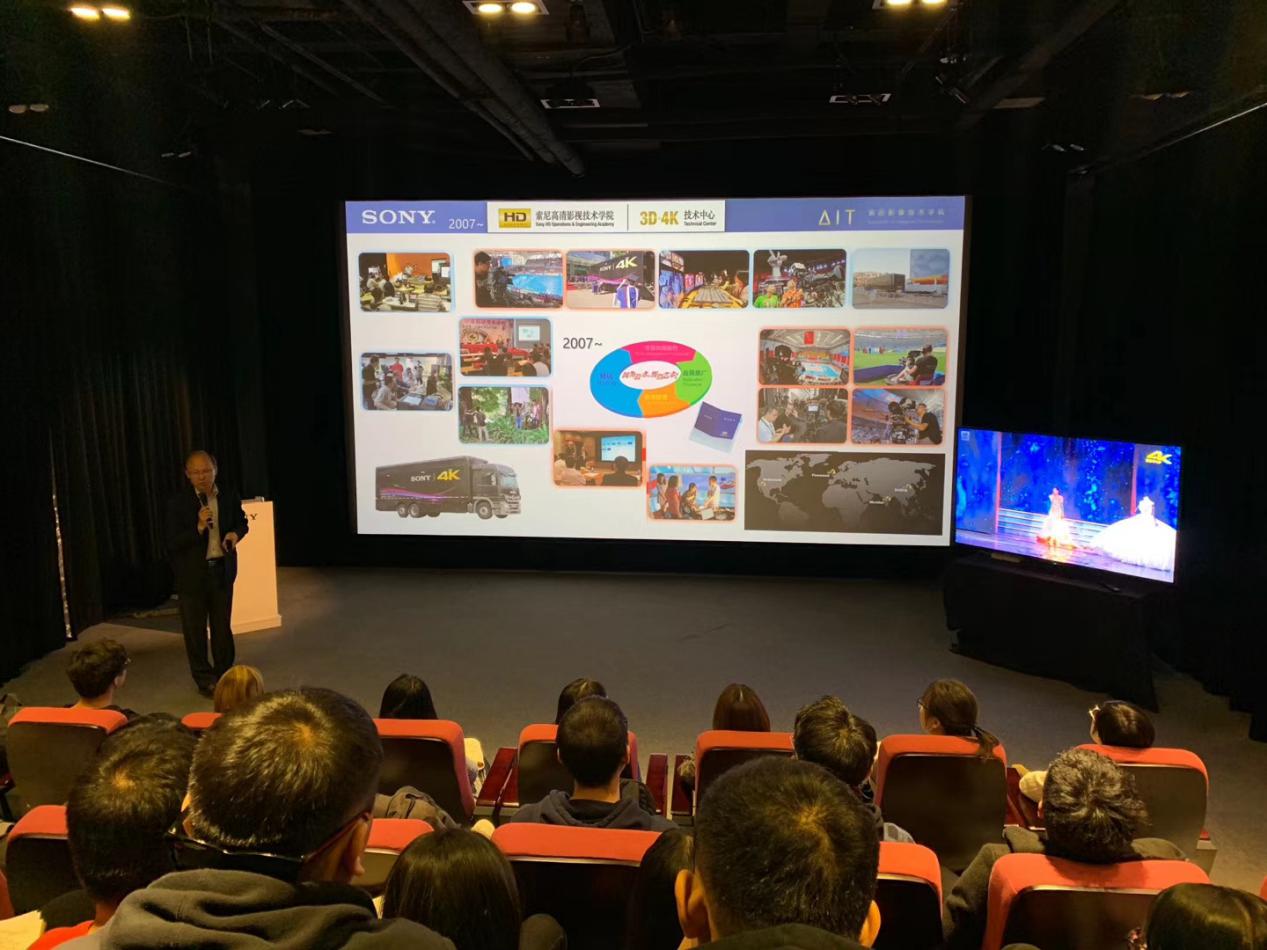 11月1日,迟老师带领我校学生前往索尼技术学院参观学习。索尼集团是影视传媒专业技术世界领先企业,和我校及中国各大影视传媒机构有着长达40年的合作关系。索尼研发的4K/8K超高清晰度影视制作系统、专业光盘网络、媒体资产管理系统、专业显示设备直至视频通讯、网络监控和数字投影等被广泛应用于影视、新闻节目制作、网络通信、医疗和教育等各行各业。在参观索尼技术学院的过程中,学生们了解到索尼发展的历史,并观摩了索尼4K技术的成果展示,参观学习过程理论和实践相结合,充分诠释了迟老师“知行合一”的授课观念,也令学生们印象深刻。11月6日,迟老师从奥运会的网络节目制作系统谈起,分析了影视传播制作系统向数字化、超高清化、网络化发展过程的成功及失败案例,从中找出重大变革期时的机遇。主讲人以近四十年的亲身经历,带领学生深入浅出讨论影视传播技术的发展过程。课程设计以时间轴为主线,将各时期代表性的技术、产品及应用结合其开发过程,加上当时的人物介绍、历史背景、广告策划、经营决策、用户需求、市场反响等辅助元素,将关键技术和应用自然融入到主线中,避免枯燥的纯技术说明。为了激发学生的主动学习的能力,鼓励学生独立思考和积极参与,迟泽淮老师拿出自己的成功及失败案例交给学生讨论,让学生身临其境,举一反三。11月8日,在最后一次课上,迟老师带领各专业研究生共同探究4K/8K/VR影视技术的应用及发展,同学们分小组对本次课程学习内容的归纳总结展示,并对参加工作坊的理解感悟进行了交流。经过课程的学习,学生们对影视传播技术的发展过程与未来的发展方向都有了更深入的认识。