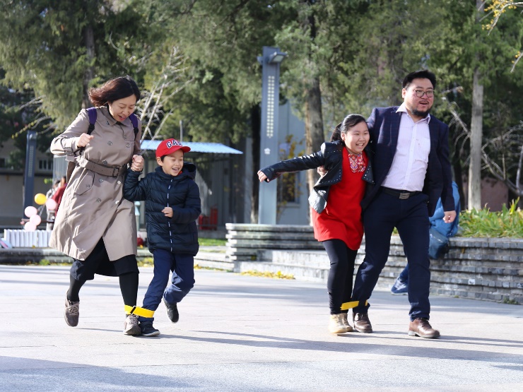 秋日的午后,大学生活动中心西侧广场进行着校友亲子大比拼活动。校友们和自己的孩子一起,进行智慧与默契的较量。“灌篮高手”奇迹百出,“你画我猜”笑料十足。在热闹与欢愉的氛围中,一家人其乐融融。