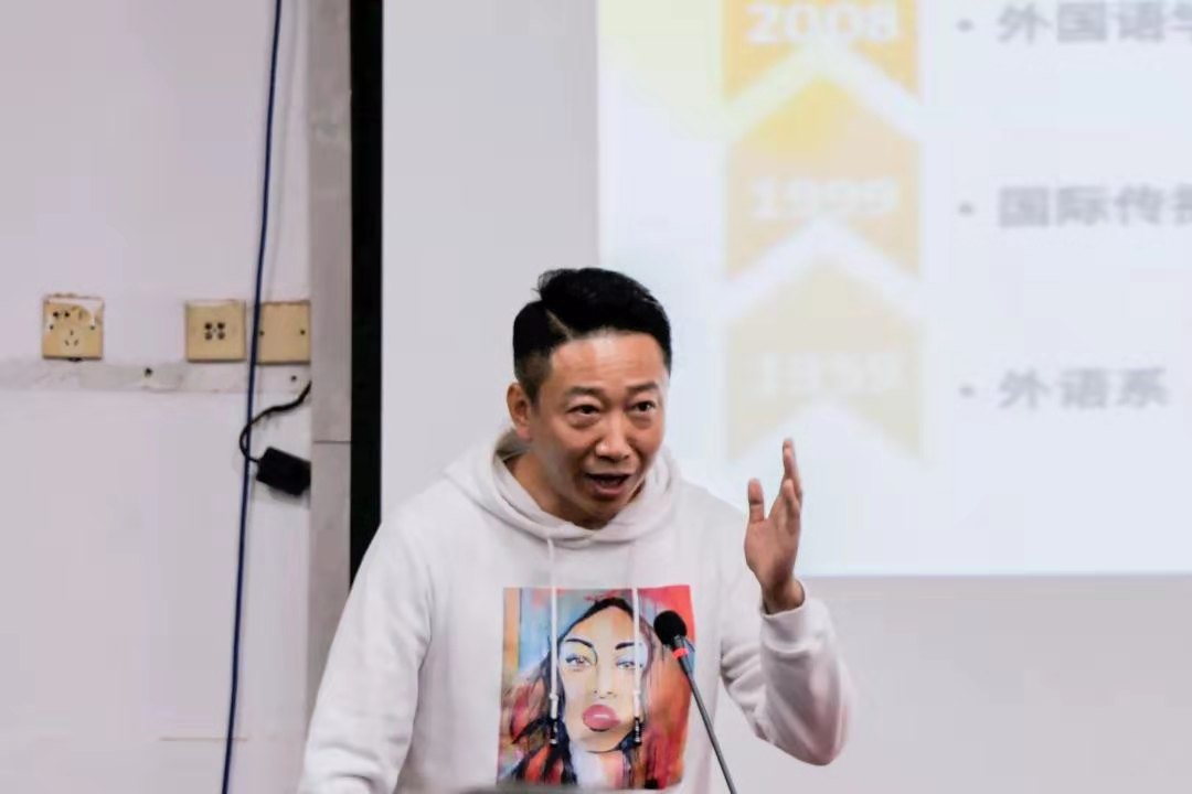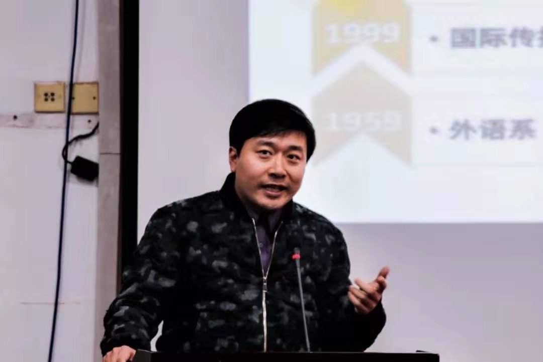 2001级西班牙语专业校友、北京版泉品牌管理有限公司CEO姜川上台介绍了自己向母校校史馆捐赠的初心,为自己赶上母校更名的等重大历史感到庆幸,祝愿母校明天更美好。