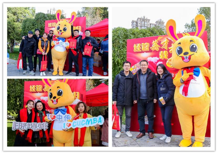 早上八点开始,校友们陆续返校,在经管学院楼门口排队签到领取学院精心准备的礼品,大家热情高涨,佩戴着中国传媒大学校庆专属纪念围巾,纷纷与学院吉祥物合影留念。