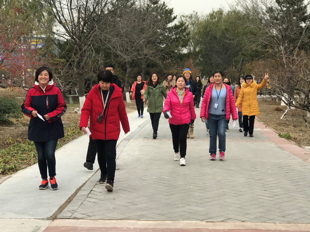 中午12:30,教职工们在学校北门集合,领取活动主题卡之后集体出发,在校工会相关负责人的带领下,过北门天桥一路向北经过朝阳路、朝阳北路,行进至京城梨园南门,再原路返回至校园北门。一路上教师们或疾步快走、步履如飞,或不疾不徐、欣赏沿途风景。本次活动是校工会全民健身系列活动的重要项目之一,传递绿色、环保、运动、健康的理念,不以竞技为目的,设有多个纪念奖项。