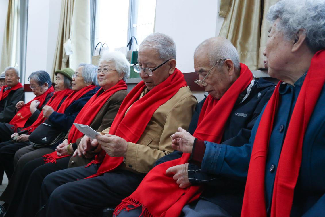 座谈期间,60级无线电系校友前来与“师哥、师姐”会面,并一起合影留念。
