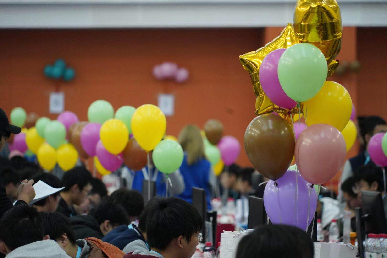 11月17日,CCPC总决赛在大学生活动中心正式拉开帷幕。每支参赛队由1名教练和3名队员组成,参赛语言支持C、C++、Java,采用上机编程、实时评测、实时排名的比赛模式。比赛时,每支参赛队在1 台计算机上进行答题,答题完成后提交代码到服务器中进行机器实时评测,每完成一个题目参赛队上方将会升起一个对应颜色的气球。在比赛最后一小时将不显示排名实时变化情况,颁奖时才会进行滚榜并公布最终结果,营造了紧张而激动人心的比赛氛围。