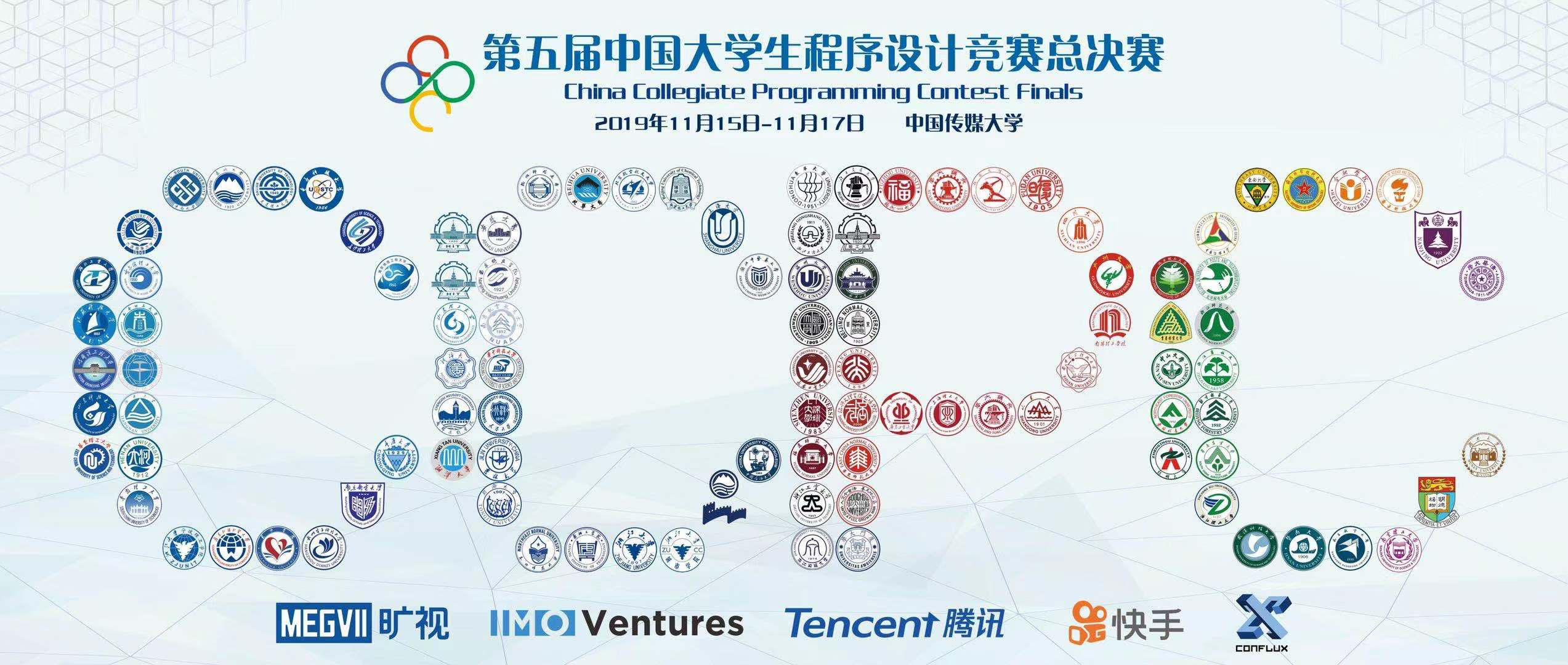 经过五个小时的激烈比赛和紧张的滚榜环节之后,本次总决赛共产生了13支金奖队伍、23支银奖队伍和33支铜奖队伍,并在决出冠亚季军以及女队冠军。清华大学的“三个顶俩”队获得冠军,南京大学的“咖啡鸡”队获得亚军,浙江大学的“Runespoor”队获得季军,上海交通大学的“星尘”队获得2019女队冠军奖。中国传媒大学代表队“可有鱼丸粗面”排名59,获得铜奖。