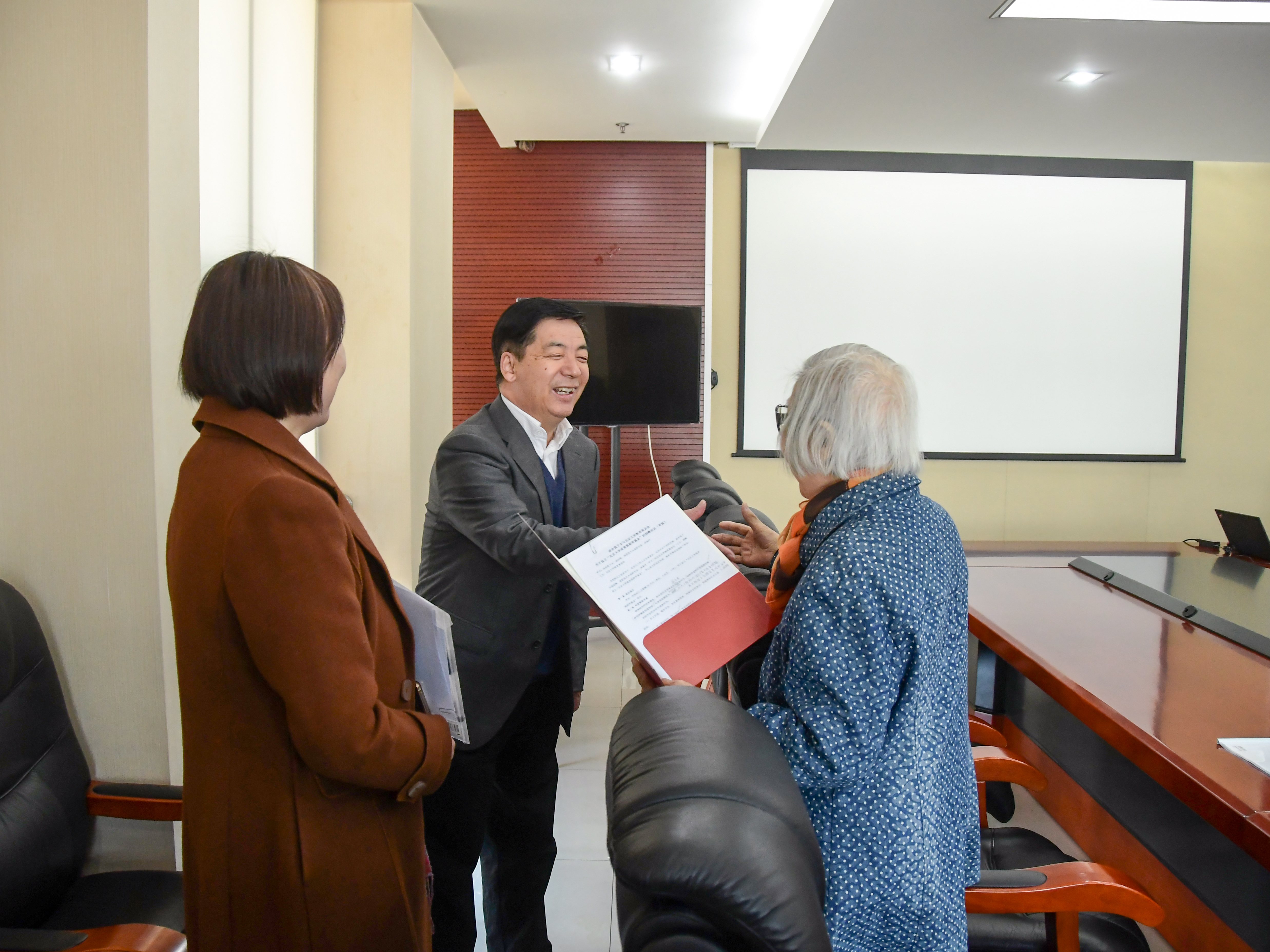 (通讯员 李季蕤 摄影 钟易江 李季蕤)11月20日下午两点,“肖宗让奖助学金”捐赠仪式在我校2号楼1010会议室举行。校党委副书记姜绪范会见了“肖宗让奖助学金”捐赠者成思危先生的夫人舒允宜女士。我校学生工作部(处)部(处)长郭婧娜、副部(处)长李萍、资助中心教师吴迪以及6名受资助学生参加了捐赠仪式。