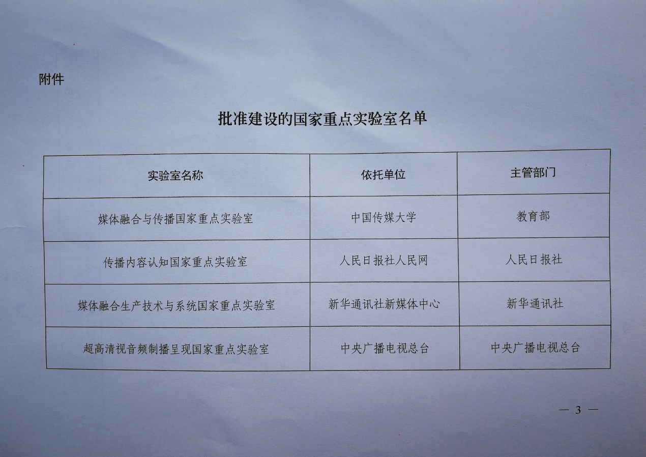 “国家重点实验室是国家组织开展基础研究和应用基础研究、聚集和培养优秀科技人才、开展高水平学术交流、具备先进科研装备的重要科技创新基地,是国家创新体系的重要组成部分。” 据悉,国家重点实验室主要分布在教育部和中国科学院,其中教育部131个,中国科学院所属部门分布78个,其他部门和地方45个。“媒体融合与传播国家重点实验室”是我国高校领域唯一一个媒体融合领域的国家重点实验室。学校将按照科技部、教育部等上级部门的相关要求,“媒体融合与传播国家重点实验室”将聚焦基础研究与应用基础研究,建立“开放、流动、联合、竞争”的运行机制,注重学科融合发展,围绕建设总目标,扎实有效推进建设与运行管理工作。
