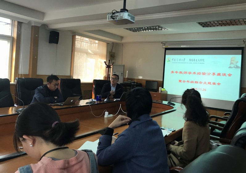 (通讯员 尹盼盼 摄影 吴艳玲)京中霜雪晚,冬日阳光暖。为持续落实2019北京高校新生引航工程相关要求,不断加强对学院研究生学术能力的培养,发挥好各年级班主任在营造浓郁学风和良好班风建设中的带头作用,11月26日下午,马克思主义学院在52号楼320会议室举办了青年教师学术经验分享座谈会暨学院联合主题班会,会议由学院科研秘书赵斌主持。面向马克思主义学院各年级硕士同学,杨洋、高宇、吴艳玲三位新任专业课教师热情分享了自己在攻读硕博学位期间学术科研方面的宝贵经验。