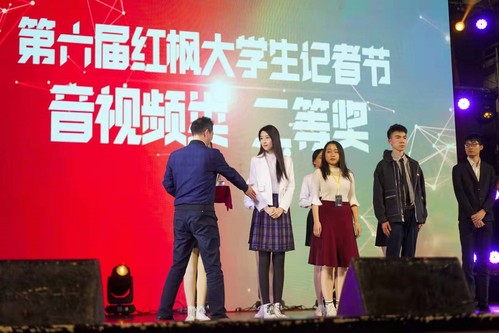 (记者 李晨雨 摄影 赵东宇 蓝天)2019年11月17日晚,第六届红枫大学生记者节闭幕式暨颁奖晚会在湖南大学大礼堂隆重举行。经过长达一个月的评审,来自我校的五份作品从国内外近1000件作品中脱颖而出,取得一个一等奖、两个二等奖、一个三等奖、一个优秀奖的好成绩,我校《中国传媒大学校报》荣获“十佳校媒”奖项。