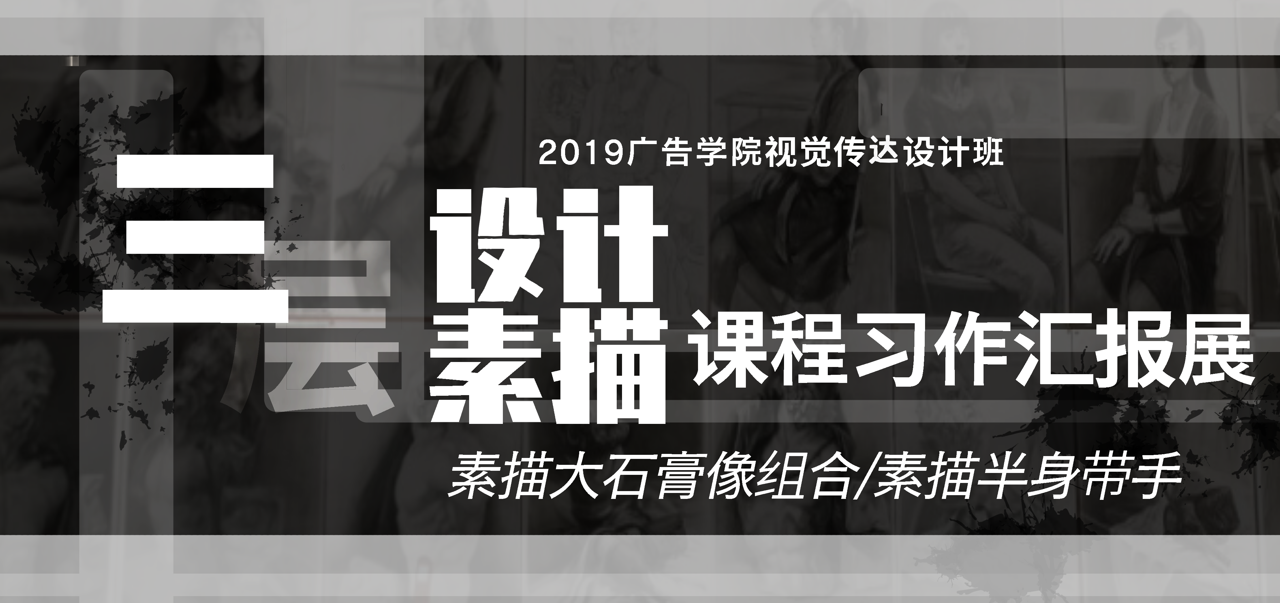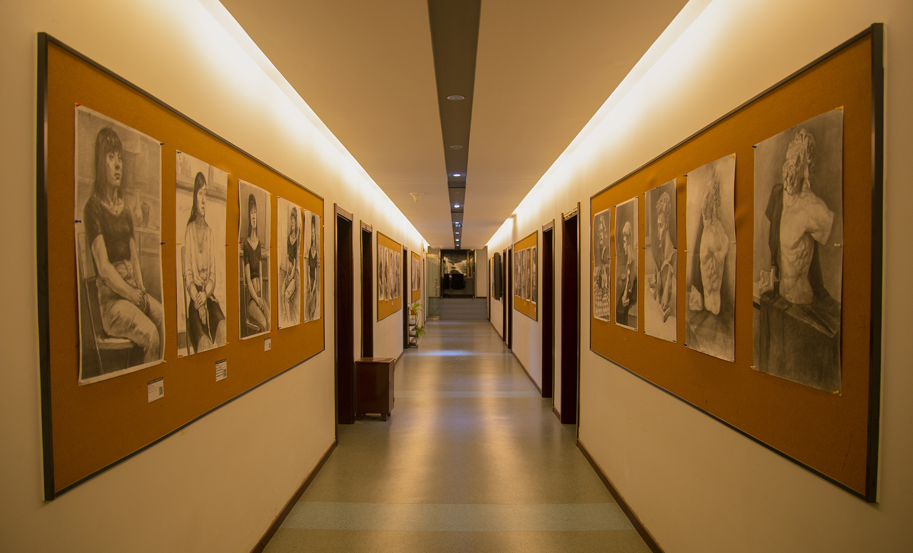 三楼的展示内容为素描大石膏像组合和素描半身带手,这部分写生课程内容的安排是为后续设计专业培养所做的前期铺垫,练回素描手感的同时,也指引学生向个性化发展。