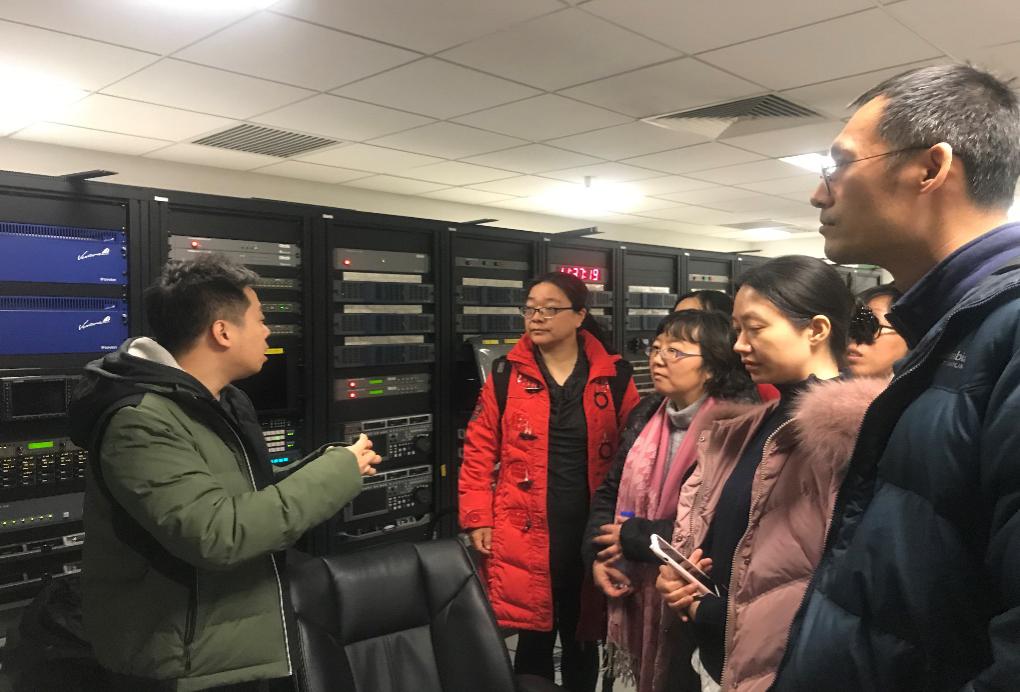 广播电视工程系主任杨盈昀表示,此次学院组织的参观交流是围绕习近平总书记在“不忘初心、牢记使命”主题教育工作会议上的讲话内容,结合生产实践开展的一次主题教育。她强调,此次主题教育以“5G+4K+AI”为技术支撑,通过结合学校科研优势资源,探索与中央媒体在媒体融合等方面的协同发展新模式,为宣传党的理论和路线方针政策、引导社会热点、加强和改进舆论监督等提供全方位技术支撑与服务。随后在工作人员的陪同下,教师代表参观了中央广播电视总台的演播室、E06演播室立柜机房、调音室和员工休闲区。