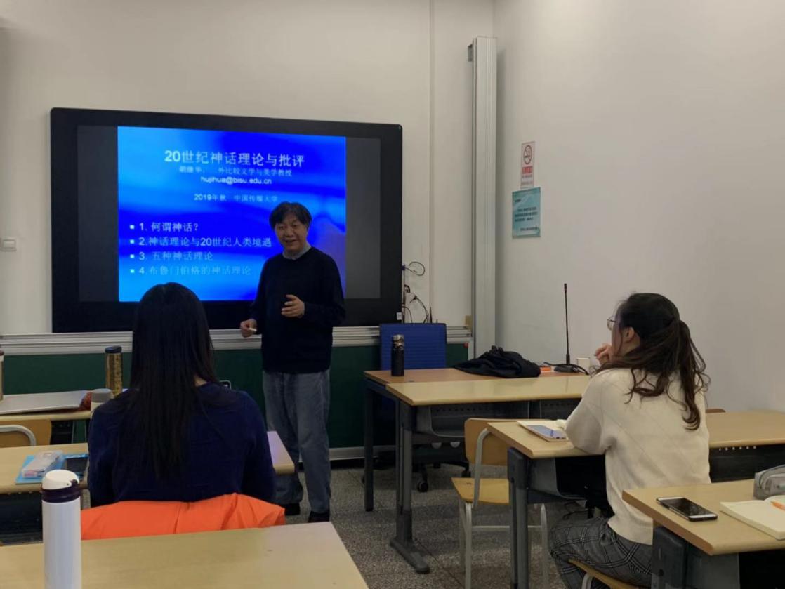 (通讯员 乐琦 李聿嘉 摄影 李聿嘉)11月27日下午,人文学院在立德楼圆满举办“20世纪神话理论与批评”学术讲座。此次讲座邀请北京第二外国语学院胡继华教授作为主讲教授,胡教授的讲座以“20世纪神话理论与批评”为主题,从“何谓神话”出发,溯源中西的“神话”内涵,联系当今颇受学界认可的五位神话理论家及其理论,重点落脚于对布鲁门·伯格神话理论的解读。在讲座中,胡教授围绕“实在专制主义”“词语进化论”“神话终结论”三个关键词,系统解读了布鲁门·伯格的神话批评的体系与思想。