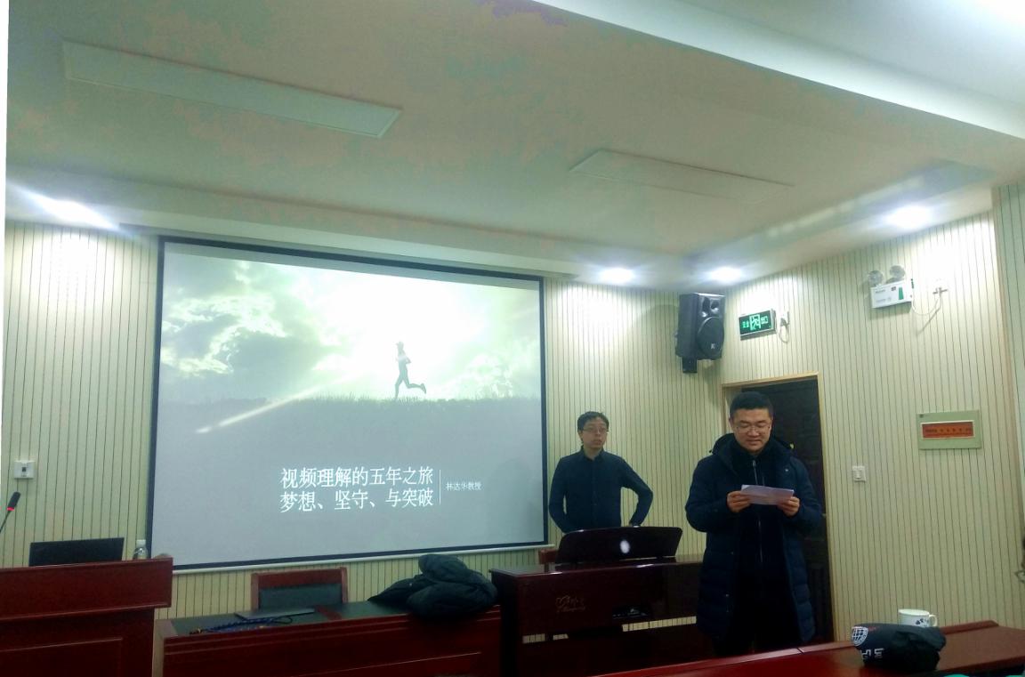 (通讯员 陈梦 摄影 苏杰)12月17日上午,应信息与通信工程学院邀请,香港中文大学信息工程系林达华教授在主楼八层报告厅进行了主题为“视频理解的五年之旅——梦想、坚守、与突破”的学术讲座。商汤科技视频大数据产品经理江訢华、信息与通信工程学院副院长金立标以及部分师生参加了讲座。