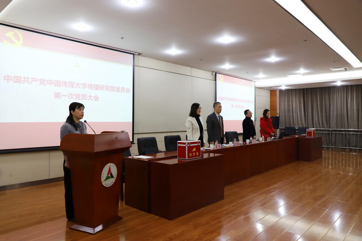 在总监票人丁岩妍同志的主持下,全体与会党员按照选举程序和选举办法,通过差额无记名投票的方式,选举产生了中国传媒大学传播研究院第一届党委委员5人。
