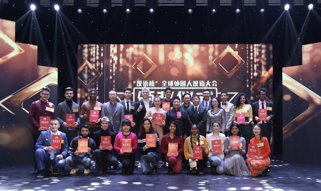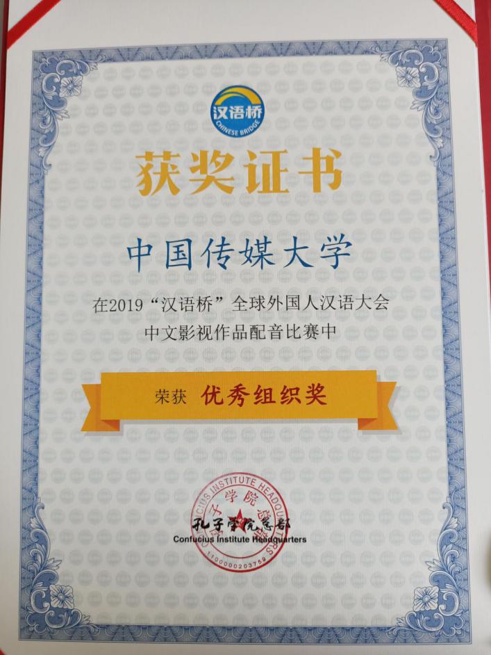 (通讯员 孙玉红)12月20日,由孔子学院总部/国家汉办联合中央广播电视总台共同举办的2019“汉语桥”全球外国人汉语大会配音比赛总决赛暨颁奖仪式在北京市华远演播厅举行。中央广播电视总台国际传播规划局汉语推广板块负责人陈强、孔子学院总部交流处处长滕连帅、网络孔子学院副总经理王锦红、科大讯飞公关部总监刘辉以及来自各大高校的师生代表参加了活动。本届配音比赛历时三个月,吸引了来自58个国家、49所院校的358位选手参加,参赛作品达459个。最终14位选手脱颖而出,参加了总决赛的角逐。我校二十余名留学生报名参赛,一名晋级决赛,获得铜奖,一名同学获“优秀表演奖”,我校荣获“优秀组织奖”。