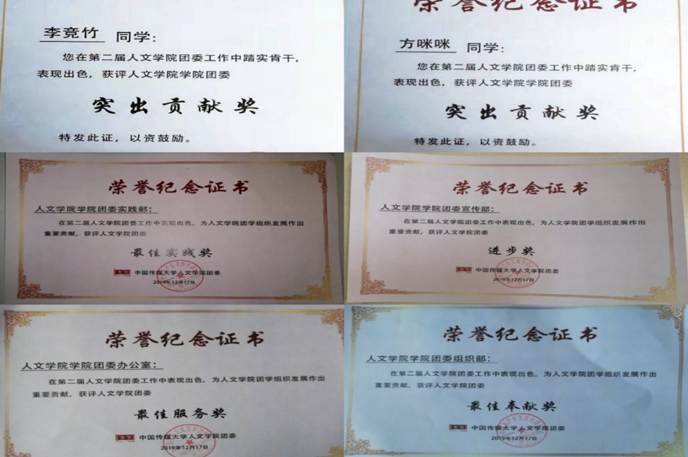 人文学院团委在中国传媒大学2019年度团委评优表彰工作中荣获“红旗团委”。人文学院团委副书记徐艺铭老师对人文学院团委的工作表示高度肯定,并对人文学院团委获得“红旗团委”表示热烈祝贺。徐老师表示,今年是改革梳理、打下基础的一年,明年团委会更加有针对性地去开展各项工作。她对各部门这一年辛苦的付出表示感谢,并对各部门进行表彰。